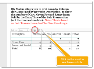 This will display the usual Drill Up/Down arrows but notice with Matrix type visuals there is a new control for Drill On: [Rows/Columns] drop-down menu.