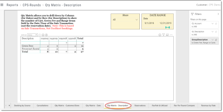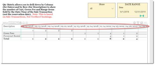 Note that we simply flipped the Qty Matrix – Date report to make the rows by Description and columns by Date.
