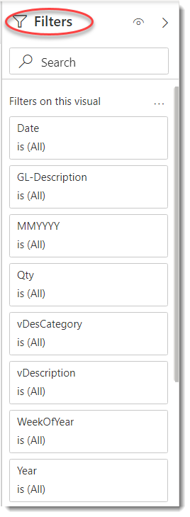 In addition to the Date Range slicer, the right-side menu of this report provides various Filters to allow you to filter the data in a number of ways. Click on any of the Filter fields for basic and advance filter and search options.