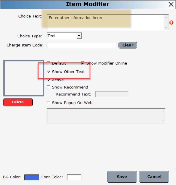 In the 3.100 release, a Special Note modifier button was added. When this button is pressed, it displays a field with the cursor at the ready when the item is selected. If the majority of your items receive special notes, this newly added feature to the system should enhance your workflow. This option needs to be set up in the Inventory module for your food items by enabling the Show other text option in the Modifier Setup screen.