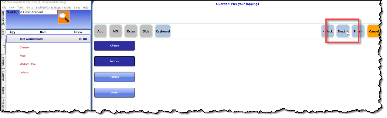 These steps start after you have already added an item that contained modifiers in F&B. So starting in F&B with that situation, do the following: