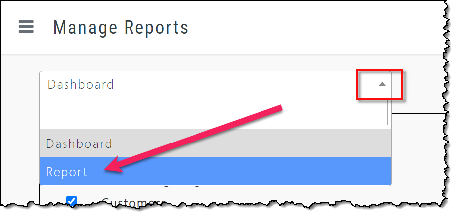 Select Manage Report on the left side. The Manage Report Screen displays.