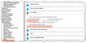 Check the Force employee? box in Options | Sales Options | Sales by Terminal | Force Options.