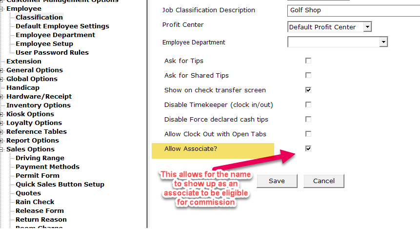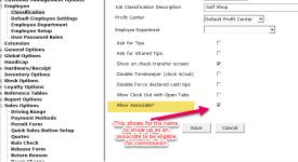 Note: If you click the Associate button on the pinscreen and no associates show up, make sure you go to Tools | Options | Employee | Classification and select any job classifications that apply to the employees and enable the Allow Associate? checkbox.