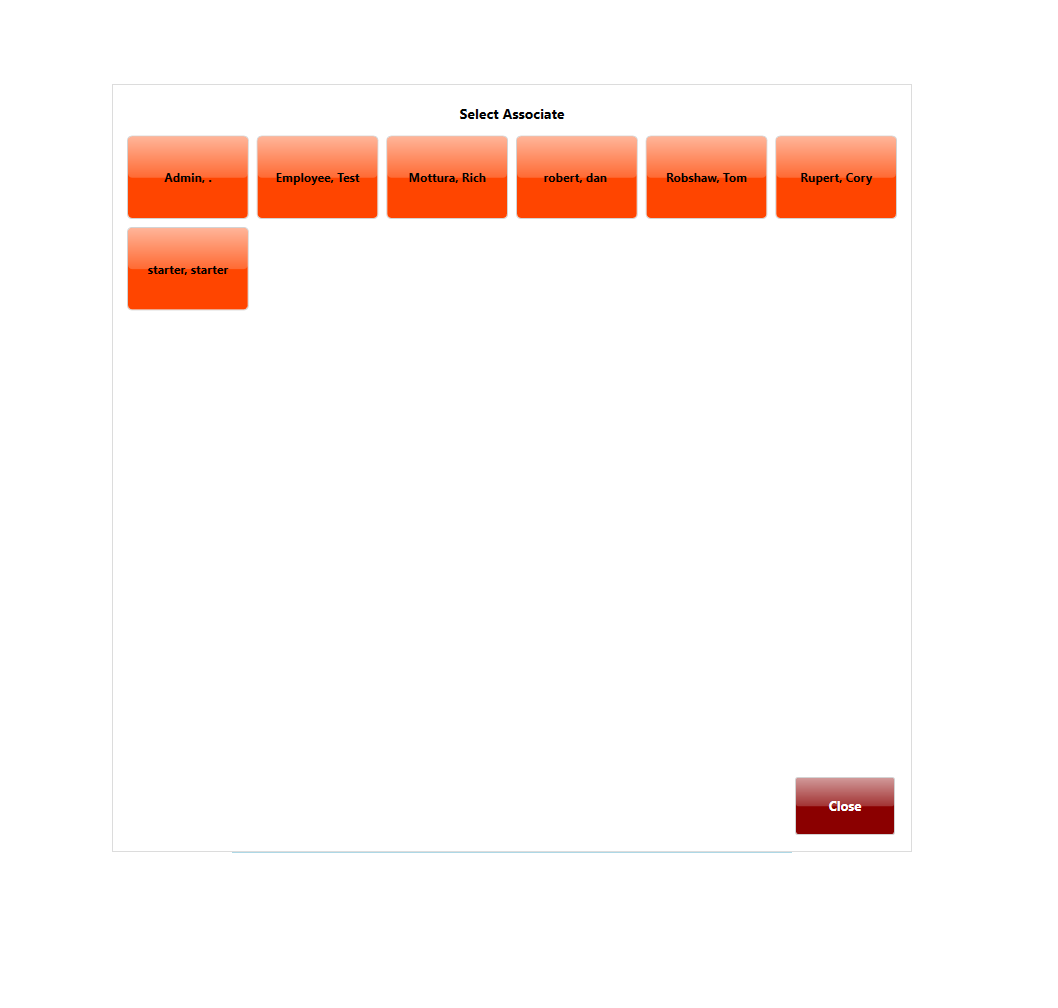 Select Finalize Payment. The Select Associate screen displays with button(s) displaying the name(s) of the associate(s).