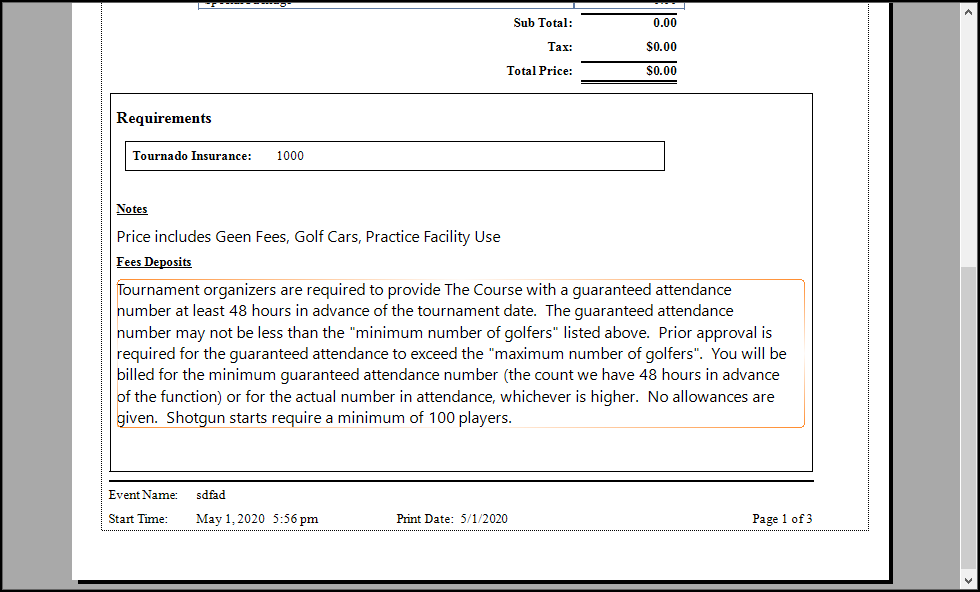 To see and or print your event contract, make sure you are on the right tee sheet and click Event.