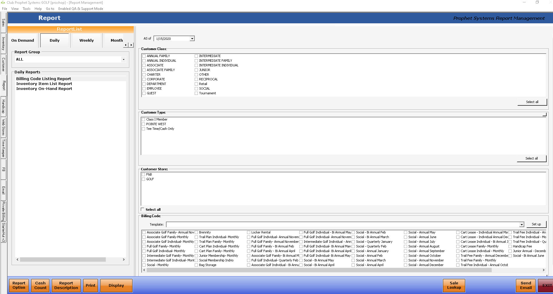 Note: The Billing Code Listing report shows what ACTIVE codes will be charged to a customer up to a certain date. So if you run it to a date and a billing code is not charged to that date, it will not show.