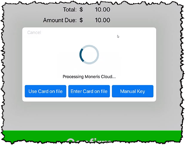 Finalize the sale. The Moneris Cloud processing screen displays.